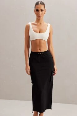 A new season essential, the Kirra cargo maxi skirt is a must have piece to enhance your everyday wardrobe. This low rise maxi skirt features an ultra comfortable elasticated waistband with functional toggle that allows you to perfect your fit. Falling to an on trend loose fit, the Kirra maxi skirt has classic cargo toggles at the hem, functional side pockets and a narrow slit on the reverse that allows for ease of movement. Functional and flattering, Kirra is a statement style for on trend dressing this season.