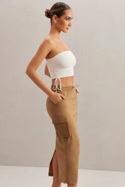 A new season essential, the Kirra cargo maxi skirt is a must have piece to enhance your everyday wardrobe. This low rise maxi skirt features an ultra comfortable elasticated waistband with functional toggle that allows you to perfect your fit. Falling to an on trend loose fit, the Kirra maxi skirt has classic cargo toggles at the hem, functional side pockets and a narrow slit on the reverse that allows for ease of movement. Functional and flattering, Kirra is a statement style for on trend dressing this season.