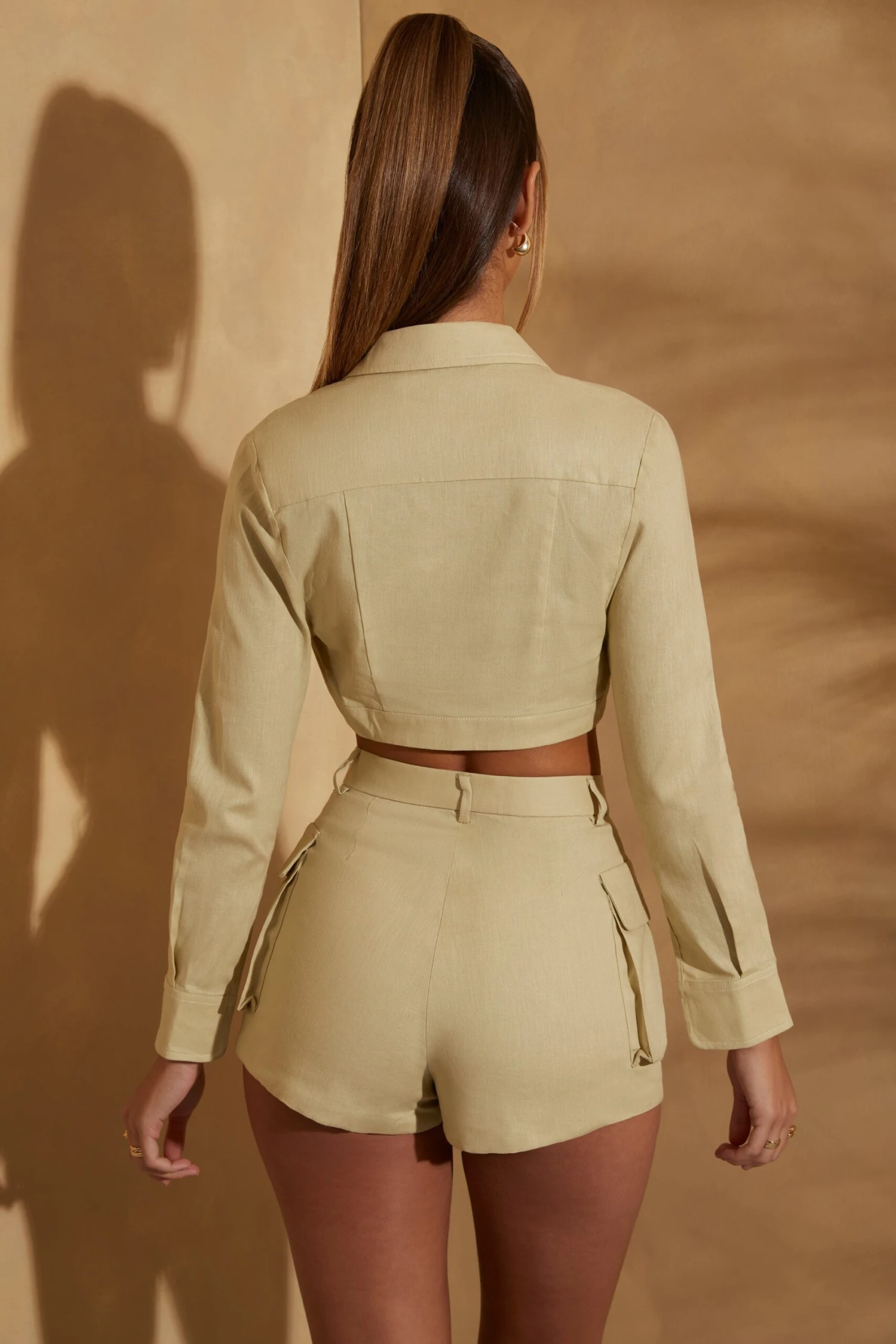Created in our all new, lightweight linen fabric that’s perfect for the new season, Shae is an all new silhouette perfect for layering over any style from the latest Tammy Hembrow collection. Cut to a cropped length with a shirt style, collared neckline the Shae shrug has a tapered silhouette that’s relaxed around the shoulders for an effortless style. Complete with long sleeves with split detailing, the Shae shrug is an essential style for your cool girl aesthetic wardrobe.