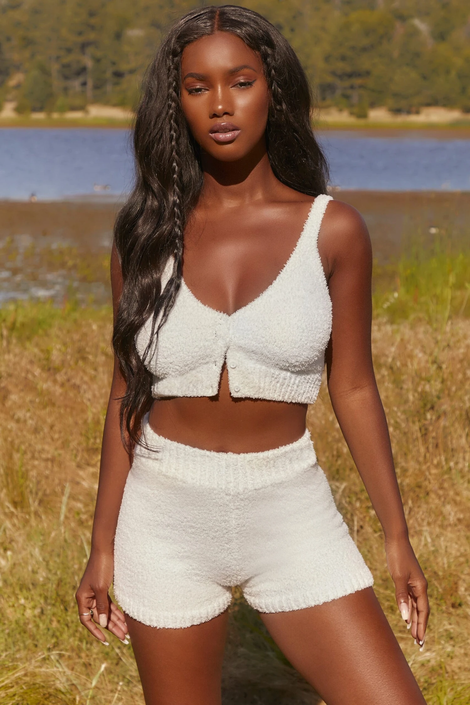 Make time for you in our super soft, cosy lounge top. Cut to a cute cropped length with V neckline and ribbed underband, it’s finished with a button front so you can style it your own way. Our premium, super soft fabric makes it a winner for lazy, pamper days. Time to treat yourself, honey.