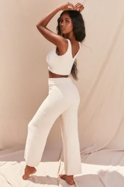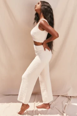 Nights in have never looked better than in our premium loungewear sets. The Let’s Stay In tank top is designed in the softest boucle knit fabric, for optimal comfort. Stretchy, for an easy wearing fit, the sleeveless cut is perfect for Spring. Choose to pair with our coordinating lounge shorts or joggers and grab your popcorn for movie night, babe.