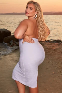 Designed in dreamy crochet knit fabric combined with a chic midi length, Azure halter-neck midi dress was made to showcase your shape. Finished with a tie neck fastening and plunging neckline, we’re loving the silhouette of this figure-hugging bodycon dress. Styled simply with strappy sandals, we’re livin’ wild and free, just like the sea this summer, babe.