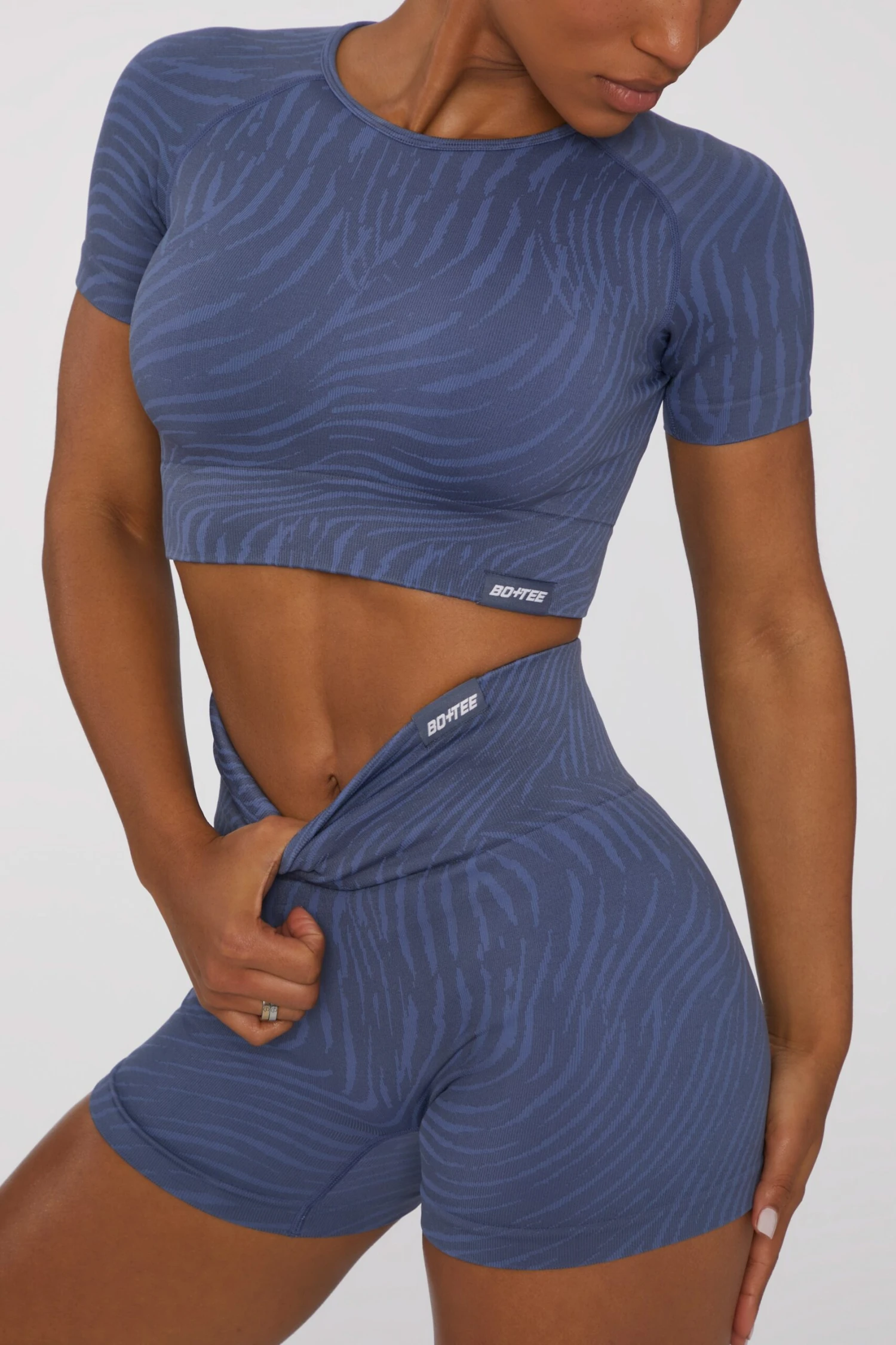 Motivation starts with a new kit, and you can trust Instinct to get you in the mood. YouÂ’ll love the fit, made in seamless, sweat-wicking fabric with an all-over zebra jacquard design. Short sleeves, a cropped length and comfy ribbed hem finish the look. Pairs well with the matching leggings or shorts.