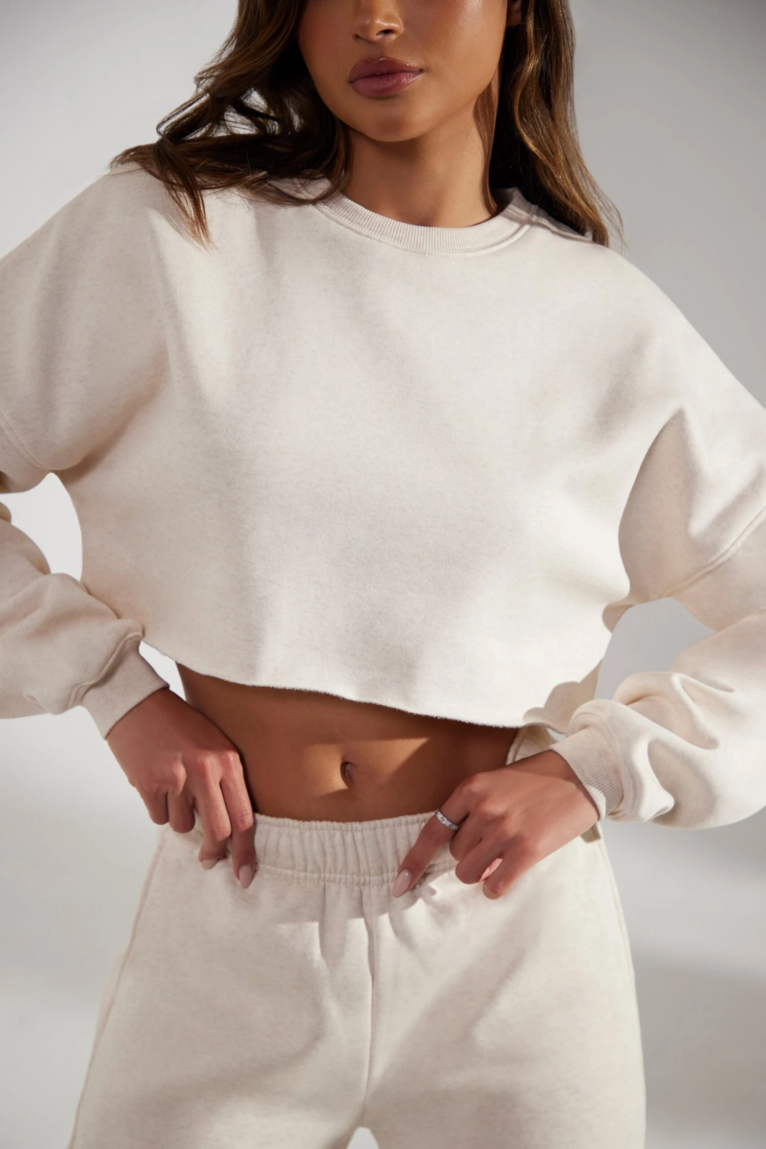 Cropped Oversized Sweatshirt In Heather Oat