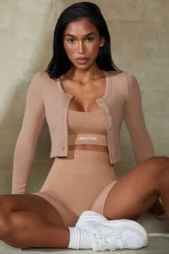 Create the perfect pilates fit with the Frame cardigan. Perfect for layering, the Frame cardigan is a flattering design with a round neckline and long sleeves. Designed in our lightweight, micro rib fabric, Frame is complete with front button fastenings and is cut to a flattering slightly cropped length.Â