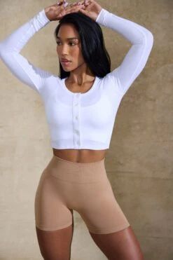 Create the perfect pilates fit with the Frame cardigan. Perfect for layering, the Frame cardigan is a flattering design with a round neckline and long sleeves. Designed in our lightweight, micro rib fabric, Frame is complete with front button fastenings and is cut to a flattering slightly cropped length.Â