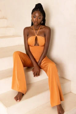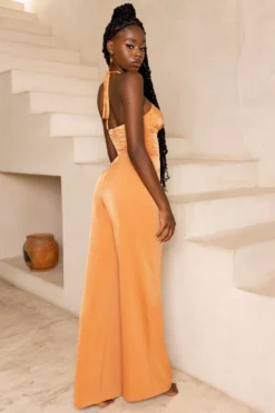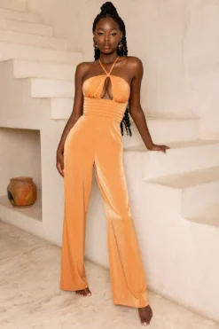 Do you want to look golden hour ready, babe? Our halter neck jumpsuit will have you looking picture perfect in no time. The gathered detailing frames your figure whilst our luxe body-hugging fabric skims your shape, flattering you in all the right places. Get that summer glow by pairing with strappy mules and a clutch bag. Summer evenings have never looked so good on you.