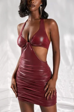 Designed in our ultra-flattering high shine stretch fabric with soft jersey underlay, our Sweetest Sin mini dress also features full body ruching to ensure a flattering silhouette with cinched in waist.