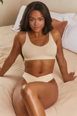Think lazy mornings with a cup of coffee in our soft, scoop neck bralet. Perfect to lounge around in, our smooth modal bra top features a thick underband design and cut-out back detail for a flirty finish. Pair with the matching thong briefs for the comfiest set you’ll own, babe.