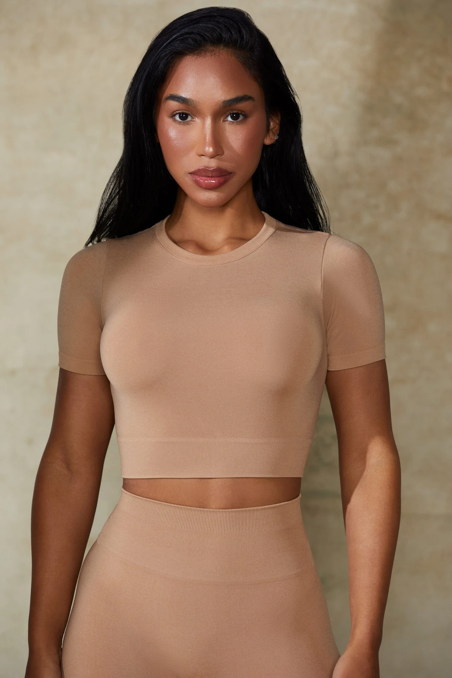 An activewear essential designed in our innovative lightweight and slinky Define Luxe fabric, the Excel crop top is a smoothing design that moves with your body and allows for ultimate second skin comfort. Cut to a cropped length, the Excel crop top features a high, crew neck, short sleeves and a micro rib hem that provides increased support. Complete with stitched Bo+Tee branding on the back of the design and created in four tonal shades, the Excel crop top is a versatile piece to elevate your activewear wardrobe.