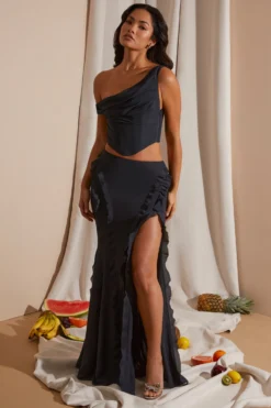 A classic and seductive crop top designed in our premium georgette fabric, the Alessia crop top exudes sophisticated sensuality. Made from our premium georgette fabric, the Alessia top has an asymmetric draped neckline that exposes a single shoulder and features an angled hem that cinches your waist. Complete with an ultra seductive, open back and boudoir inspired lace up detailing, the Alessia crop top is a glamorous and seductive separate piece designed to enhance your evening wear wardrobe.