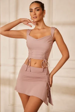 Simplistic and seductive, Cara is our latest leg lengthening mini skirt design, cut from our super soft modal fabric. This chic design features a waist cinching angled waistband with a flattering drawstring at the hip that creates a flattering ruched effect. Complete with an asymmetric hemline with side split beneath the drawstring channel, Cara is the perfect balance of sleek and seductive styling.