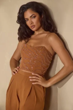A classic corset with swirling bead adornment throughout the design, Mina is beautifully crafted and ultra feminine. Cut from our premium georgette fabric that’s soft against the skin, Mina features built in boning that ensures your silhouette remains cinched and supported. The slightly curved neckline accentuates the bust whilst the strapless design exposes the decolletage for a seductive, sensual look.