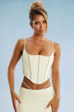 The 90s are calling, mid-rise mini skirts are back, and OP has styled this soft, dual-layered mini skirt with embellished g-string style straps to accentuate the hips and waist. Pair your Ada mini skirt with our Caia embellished corset top.