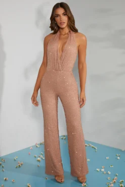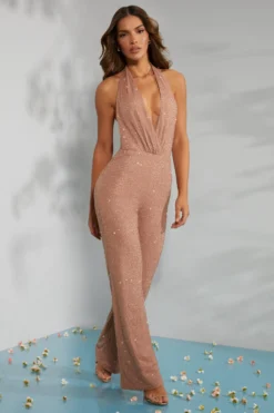 The Amalfi embellished jumpsuit is a sexy eventwear staple designed to showcase your sun kissed skin. Designed to be the ultimate party piece, the Amalfi jumpsuit is fully adorned with bead adornment throughout that sparkles under dance floor spotlights and captivates attention. With a daring plunge neckline that wraps subtly at the waist, the Amalfi jumpsuit is a halter neck design with an open back that exudes confidence and sensuality. A full length design with a subtly flared hem, Amalfi is a sparkling jumpsuit you’ll adore forever.