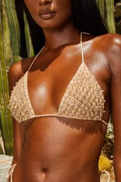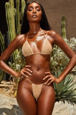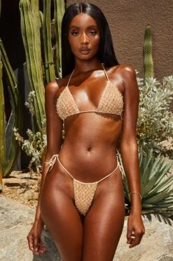 It’s the bikini you’ve been dreamin’ of, honey. Our most loved Drop A Glint mini dress has been remodelled into a sizzlin’ hot bikini. Glint In The Ocean micro thong bikini bottoms are carved from our iconic hand-embellished premium fabric.