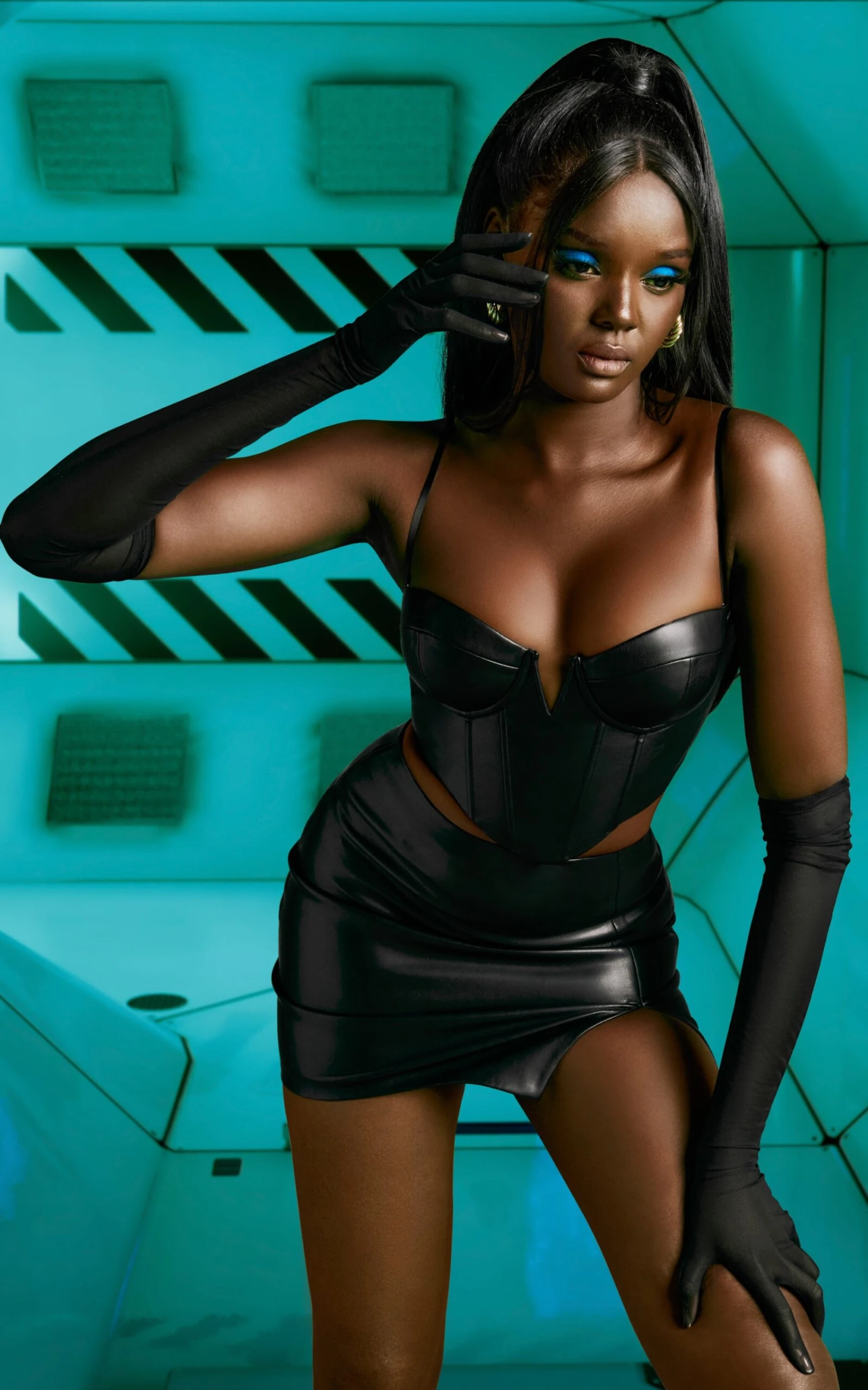 You’ll be on your way to statement styling in our faux leather mini skirt with thigh split detailing. This high waisted design is cut with an on trend faux leather fabric with jersey lining combining both comfort and style. Pair this versatile wardrobe staple with our faux leather corset crop top or oversized shirt to elevate your look to a whole new level.