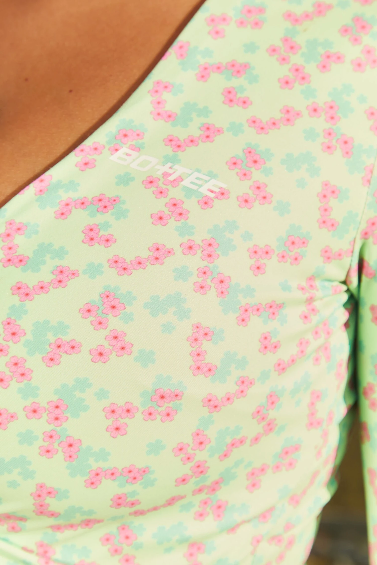 In a smooth, close-to skin fit, our slinky long sleeve crop top provides style and support both in and out of the gym. Cut in a bust-flattering wrap front design with supportive seams that allow for comfort and ease of movement, no matter the activity. Pair with our matching ditsy floral shorts or leggings to complete your workout ready look.