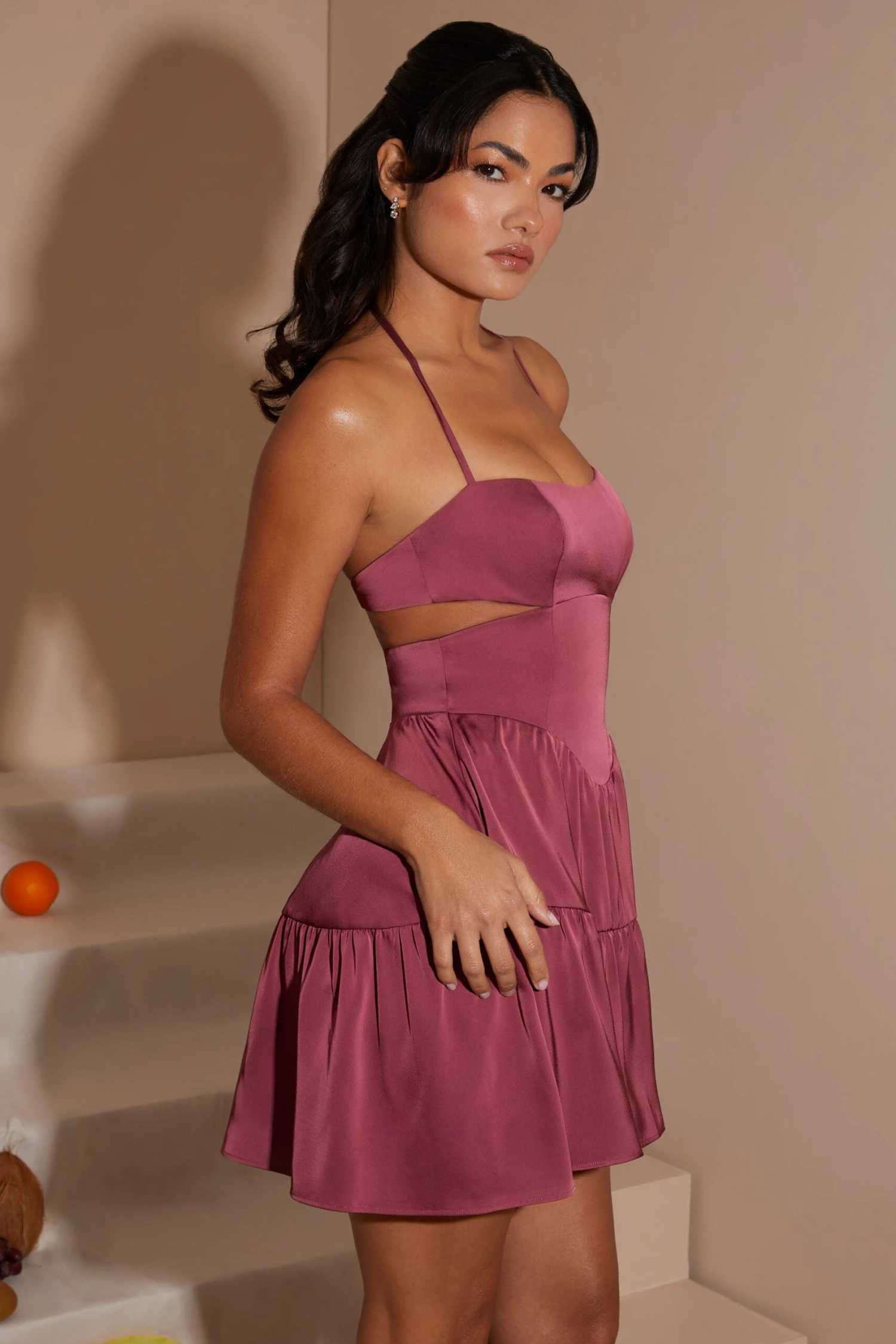 Fleur is a romantic style designed to captivate any room. Made from our premium lightweight satin fabric, the Fleur mini dress features a bodycon bodice with a lightly curved halter neckline that accentuates the bust. The curved hemline works to accentuate your shape where the paneled mini skirt gathers before falling in delicate and whimsical pleats. Complete with side cut outs that extend across the back, the Fleur mini dress is a romantic piece for your eventwear wardrobe.