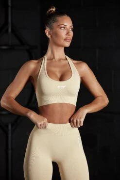 Halter Neck Sports Bra In Beige