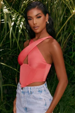 We’ve got heart eyes for you in this one, babe! With under bust seams and subtle V front, our smooth satin top with corset boning sculpts your shape in all the right places. This chic corset top features thick crossover straps and bust-flattering keyhole detailing. Finish the look with slip on mules and straight leg jeans. We know you’ll never want to take this one off, honey.