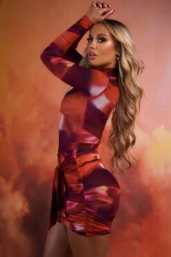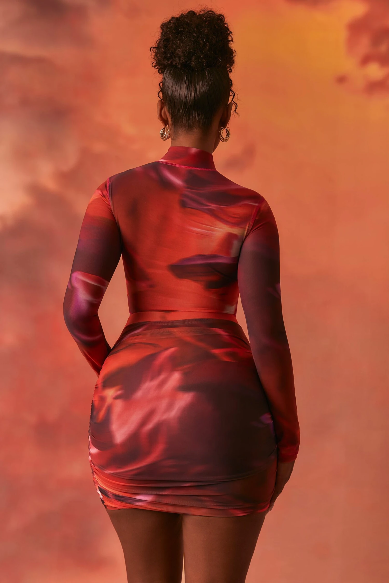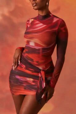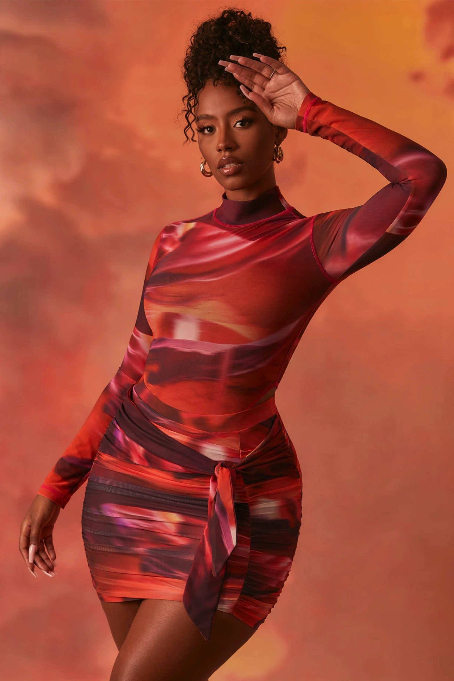 Prepare to burn bright in this one, honey. In a galactic inspired print, Supernova mesh bodysuit features a chic high neck design and tight-fitting long sleeves. We love styling this high leg bodysuit with our mesh mini skirt or flared trousers, for a sleek ‘fit that makes a serious statement, babe.
