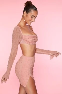 Nothing says summertime party more than a statement co-ord and the Belle Ile mini skirt is the ultimate separate piece to elevate your party wear wardrobe. Fully embellished with bead and pearl adornment, Belle Ile sits high on the waist and is cut to a mini length that elongates your legs and creates a truly flattering fit. Complete with a flirtatious side split that exposes a small amount of skin, this curve skimming mini skirt is perfect for creating a captivating party look.