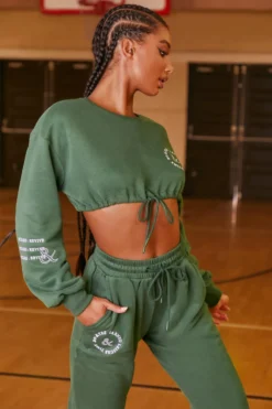 Keep Moving Cropped Drawstring Sweatshirt In Green