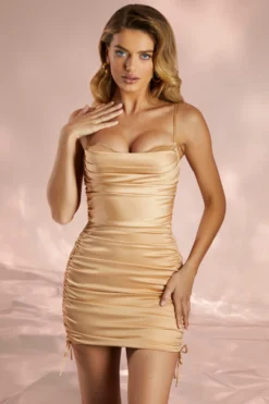 We’ve updated the classic satin mini dress and we know you’ll be falling head over heels for our All For You, our chic satin mini dress. Cut to a leg extending mini length, All For You is designed in a bodycon style that accentuates your silhouette. Sculpting, stretch satin is the base of our eye-catching mini dress that is sure to make you the centre of attention this season. With lace trimmed cups positioned between two ultra thin shoulder straps, All For You works to showcase your best assets. A draped neckline and full body ruching ensures All For You creates the ultimate flattering shape whilst drawstring side ties elevate this understated mini dress to flirtatious new heights. Enhance this simplistic but effective style by pairing with high heels and a mini clutch bag. It’s your time to shine and this classic mini dress will help do just that.