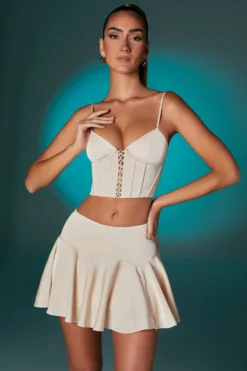 Hera is our all new corset crop designed to create the perfect party two piece this season. Designed in our premium satin fabric in two lustrous colourways, Hera features our signature built in corsetry that provides support and creates the perfect silhouette. Cut to a cropped length, Hera has statement lace up detailing that adds an increased air of allure to this classic crop top whilst the seamed bust and underwired detailing ensures a fit you can rely on.