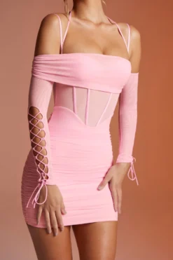 Lace Up Long Sleeve Corset Mini Dress In Pink