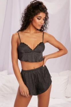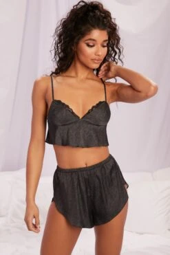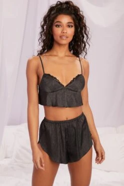 Totally dreamy, our black leopard print mini shorts are designed in ultra smooth satin in a flirty, high leg style. Skimming your shape for ultimate comfort, pair these satin shorts with the matching frill bralet for the cutest set you’ll ever own, babe.