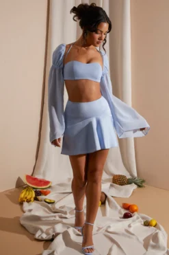 Chic and bohemian, the Kateri long sleeve bralette is a fun and floaty separate piece with romantic detailing. Made from our premium georgette fabric, the Kateri bralette has a curved neckline with halter neck shoulder straps that accentuates the bust. Super cropped with delicate puff sleeves that gather before falling into wide, flare sleeves, the Kateri bralette is a romantic and floaty design perfect for the new season.
