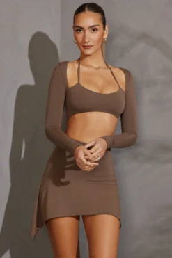 Long Sleeve Cut Out Mini Dress In Taupe - Image 5