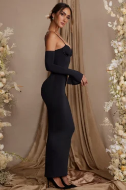 A full length glamorous style, designed to be adored in, Isolde is the statement maxi dress you need this season. Designed in our premium, slinky jersey fabric, Isolde features an underwired bust with long, split flare sleeves with one falling off the shoulder, adding a seductive touch to this romantic style. Tight cut to the body to showcase your curves, Isolde is the classic bodycon maxi dress you can rely on to create a sensual silhouette.