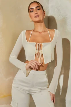 Be obsessed with Veryan, our all new silhouette designed to captivate attention and elevate your cool-girl aesthetic. Our premium underwired bra features bust flattering ruching, a halter neck strap and underwired cups that enhance lift and provide support. With a sheer mesh overlay with self tie fastenings at the front and long floaty sleeves, Veryan has everything you need to create an edgy weekend look.