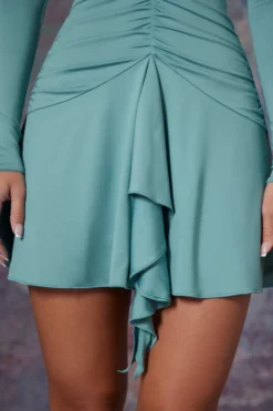 Long Sleeve Waterfall Skirt Mini Dress In Light Teal