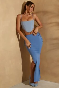 Elevate your evening wardrobe with the Dakoa maxi skirt. Designed in our buttery soft and sculpting ribbed modal fabric, the Dakoa maxi skirt is super soft and supportive. Cut to an elegant maxi length with an on trend low rise waistband, the Dakoa maxi skirt is complete with slits to each side and delicate side tie fastenings. Elegant and fashion forward, the Dakoa maxi skirt is a piece you’ll come back to time after time.Â