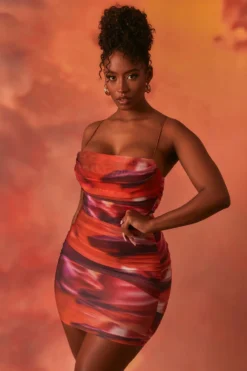 Designed to accentuate your shape for that look we know you love, we’re obsessed with Lunar mini dress. Combining ultra thin straps and a bodycon fit, this strappy mini dress hugs your curves for a super-sexy silhouette. In an abstract galactic print, our short dress with straight neckline comes in ruched mesh fabric for a body-flattering finish. Your new fave dress is here, honey.