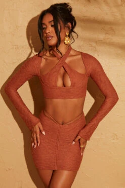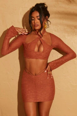 YouÂ’re guaranteed legs for days in Gobi, our lightweight bodycon mini skirt. Cut from our lightweight, lace knit fabric that hugs your curves for a flattering fit, Gobi features ruching to the front, creating a slightly angled hem and waistline. Complete with a tie waist detailing, Gobi is an essential bodycon mini for long hot days this summer.