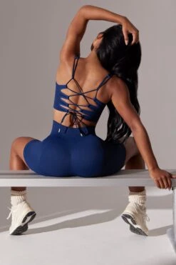 Open Back Square Neck Sports Bra In Navy