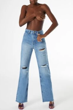 Our medium blue wash jeans are distressed to perfection, with a high-rise fit to flatter your figure. These super soft petite denims, in a slouchy wide leg fit, are finished with ripped leg detailing and distressing on the rear. Keep it casual with a crop top and fresh kicks for effortless everyday styling.