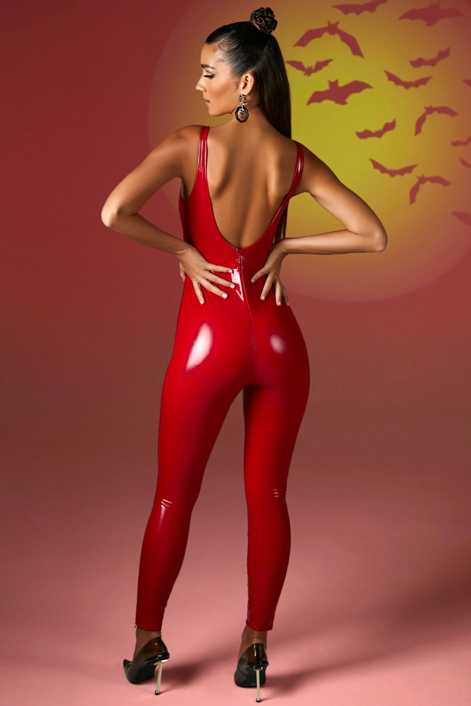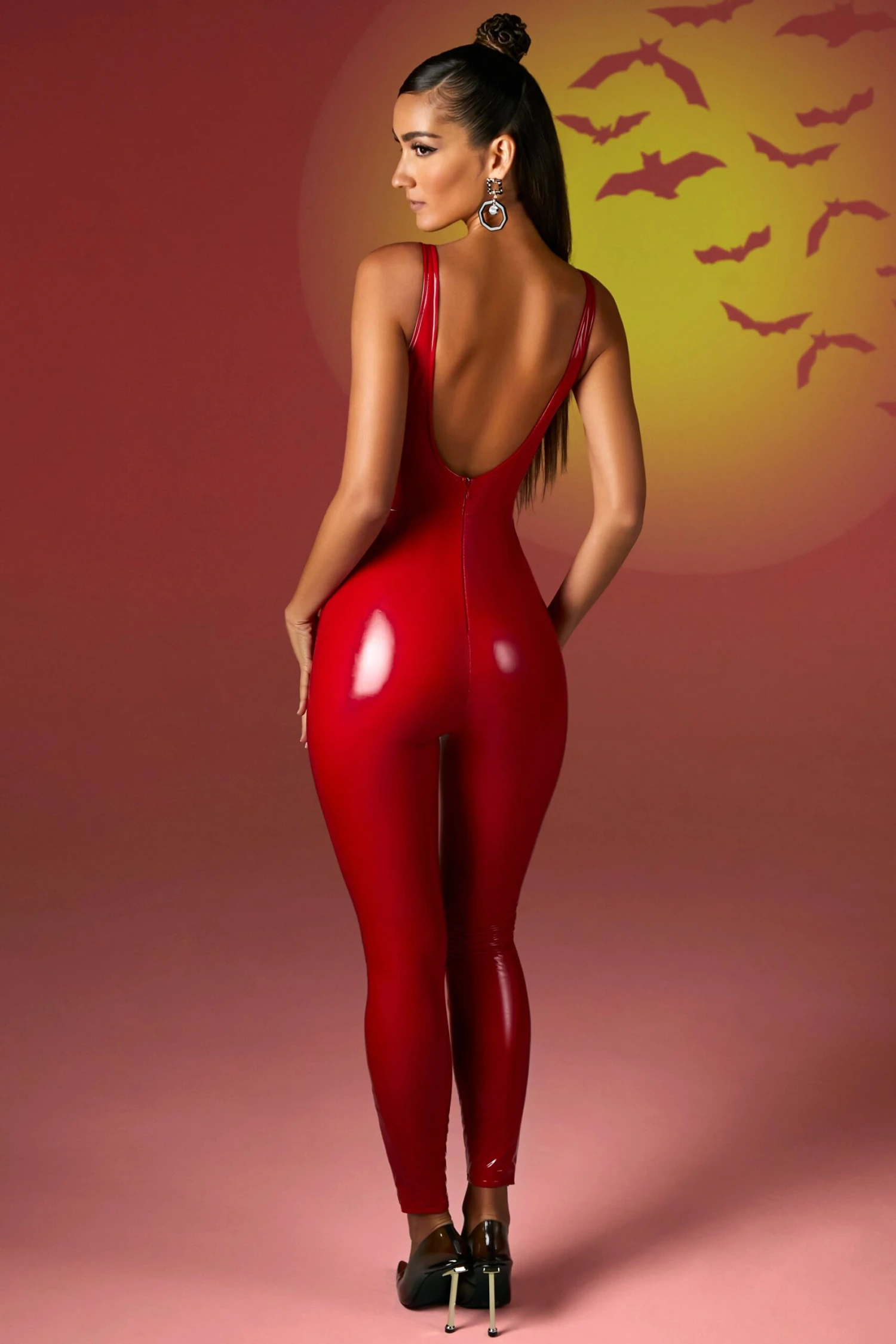 Unmask your inner edge this Halloween. A fierce new addition to your weekend wardrobe, Prowl vinyl catsuit is designed with a bust-flattering V neckline and figure-enhancing bodycon fit for a seriously glam finish. We’re styling this vinyl catsuit with strappy heels and statement accessories for a standout creepy finish.
