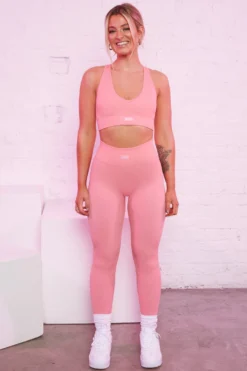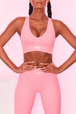 Be the best you can be in our supportive, plunge neck sports bra. Designed in our seamless knit fabric with a ribbed underband for a stay-put fit, this flattering crop top features a racer back to frame your shape. Providing freedom of movement throughout your workout, were pairing with the matching ribbed leggings for a colourful, motivating gym set this season.