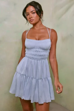 Enchanting and whimsical, the Clelia mini dress is a captivating style designed in our premium crinkle textured woven fabric. With a tight cut ruched bodice that accentuates your curves and moves with your body, the distinctive Clelia mini dress features underbust detailing and dual straps that provide enhanced support and shaping. Complete with a tiered a-line mini skirt that skims your curves and creates a fun and delicate silhouette, the Clelia mini is a feminine and pretty mini dress perfect for summertime occasions.