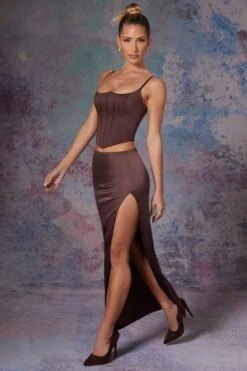 Glamorous and sophisticated, we love the Dawson maxi skirt for formal events this season. Designed in two lustrous colourways and cut from our sleek matte satin fabric, the Dawson maxi skirt sits low on the waist for an on trend, nostalgia inspired fit. Darts extending from the waistband work to cinch your silhouette whilst the high side split exposes the left leg for added seduction.