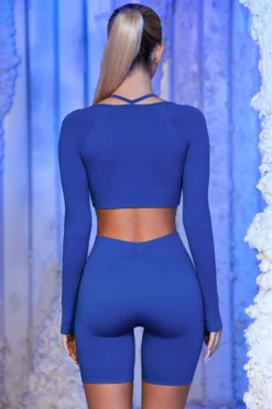 Our signature stretch ribbed fabric ensures you remain agile regardless of what your day entails. With a bust flattering square neckline framed by strap detailing and raglan sleeve shoulders, our long sleeve crop top ensures style isnt compromised.