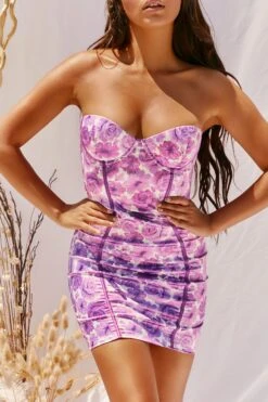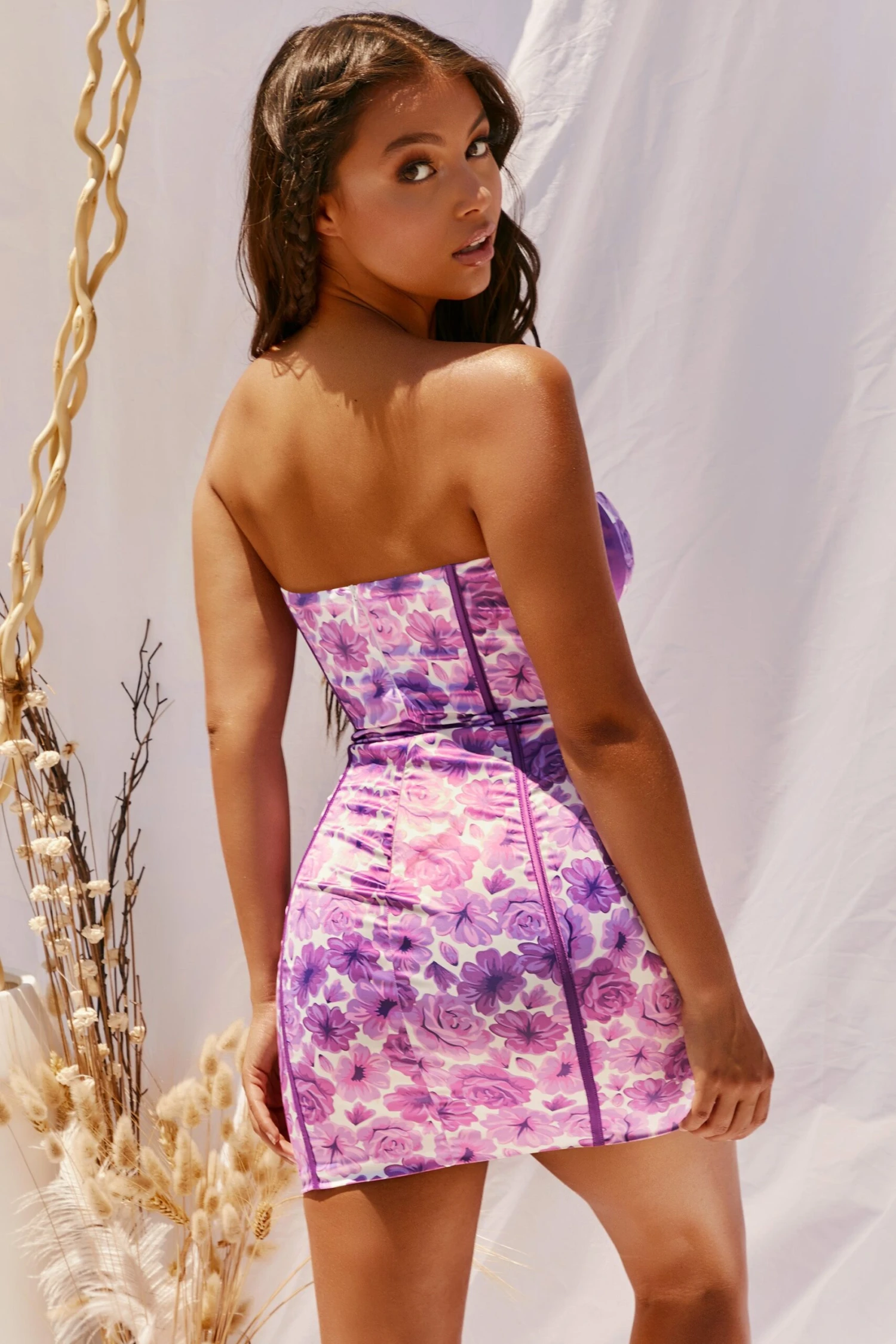 We are in love with the strapless design of our floral satin mini dress. Styled with underwired cups for a supportive bust-flattering fit. The contrast piping detail combined with the smooth satin fabric give that dreamy shape we know you love. Just add cute strappy heels and statement earrings for perfect sunny day style.