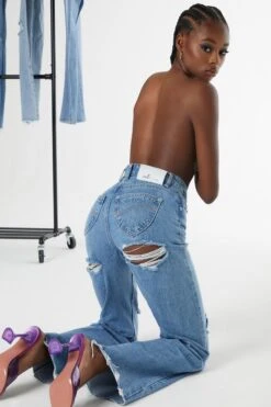 Our medium blue wash jeans are distressed to perfection, with a high-rise fit to flatter your figure. These super soft tall denims, in a slouchy wide leg fit, are finished with ripped leg detailing and distressing on the rear. Keep it casual with a crop top and fresh kicks for effortless everyday styling.
