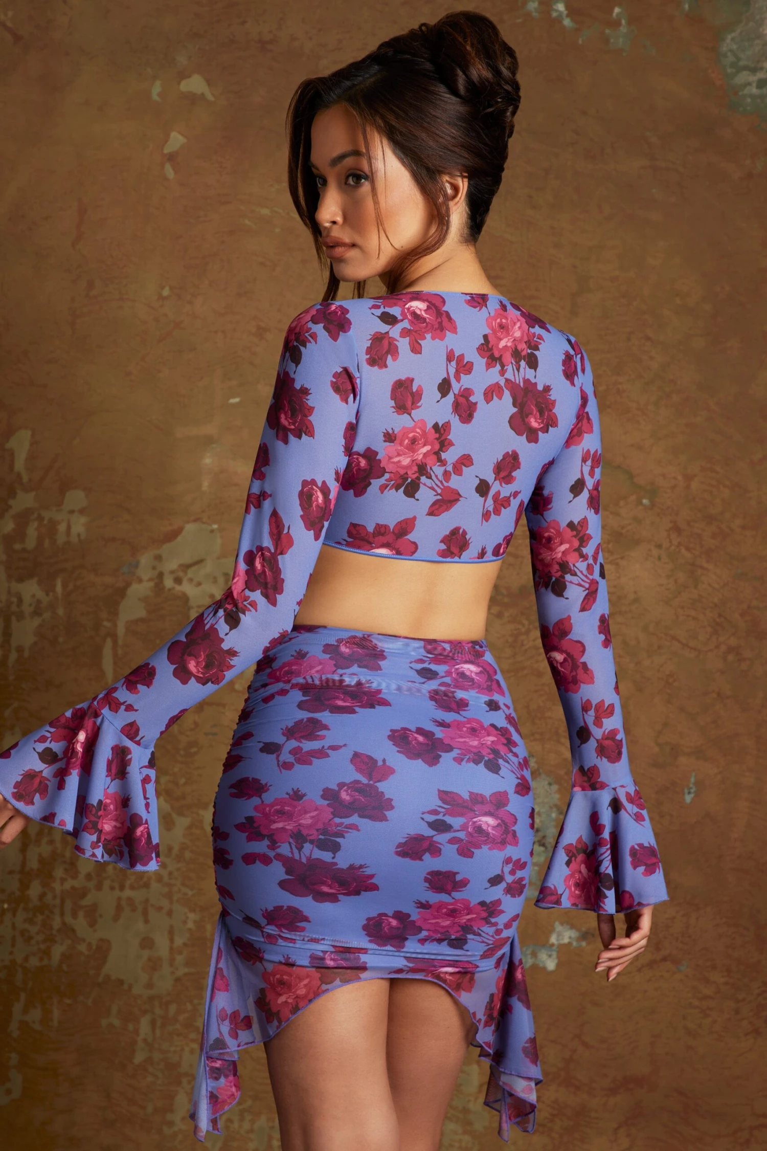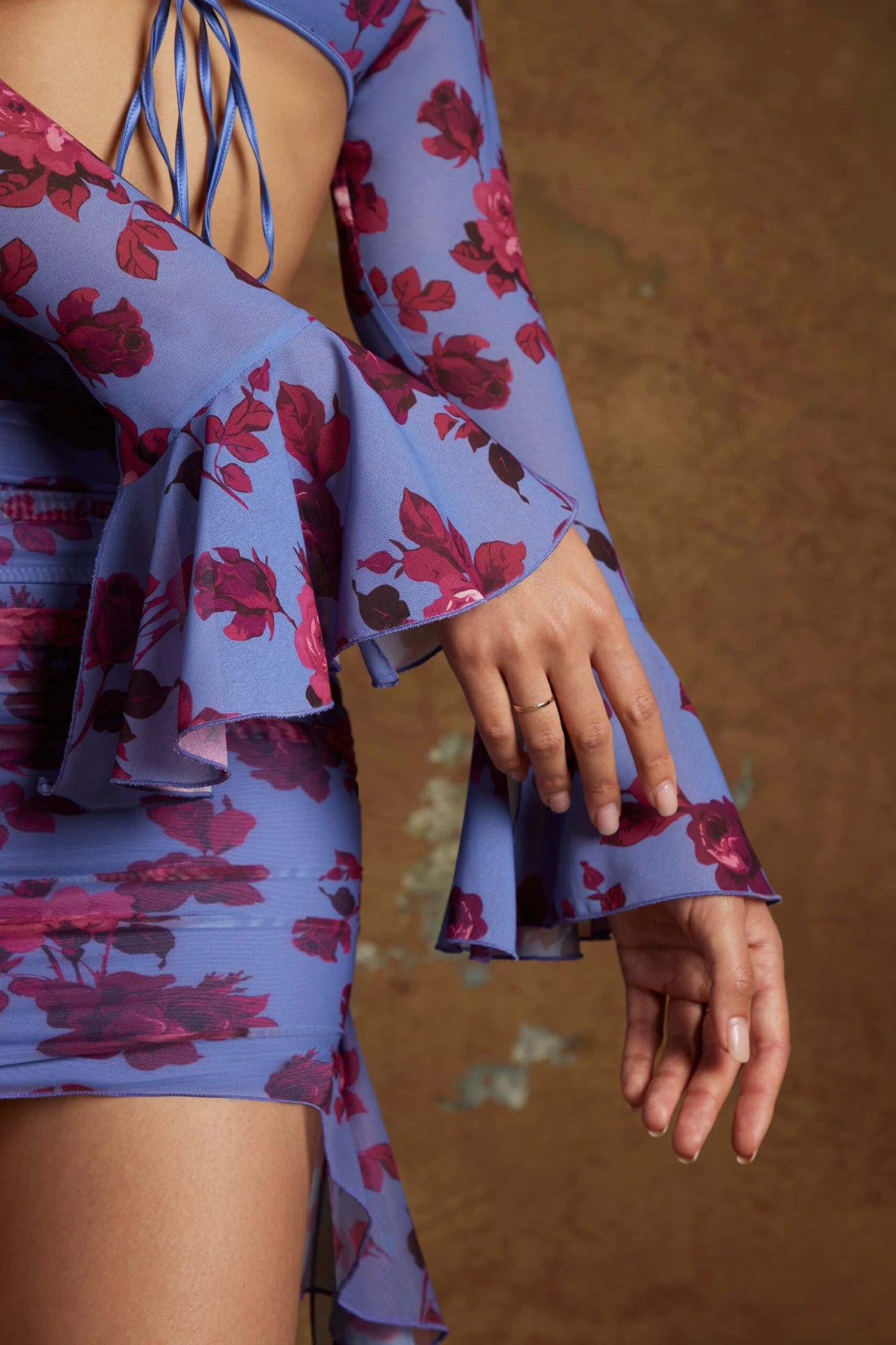 Part of a statement co-ord designed to get pulses racing, the seductive Feryal crop top is designed in our luxurious georgette fabric. Featuring a statement plunge neckline with self tie fastening at the center of the bust, Feryal is complete with extra long sleeves that flare at the wrist for added drama. Cut to a super cropped length, Feryal is designed for women unafraid to stand out.